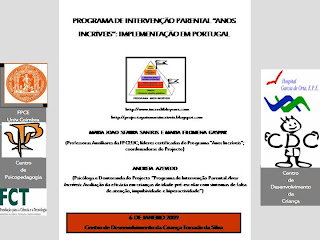 Em virtude da nossa troca de ideias, resolvemos estender o nosso programa para 14 sessões e adaptar alguns dos contéudos das sessões. Continuamos assim, em equipa e com muita energia a prosseguir com os nossos objectivos e a actualizar o nosso programa em Portugal, para chegarmos de uma forma mais efectiva às famílias que queiram participar neste Projecto, que neste momento incide em pais de crianças pré-escolares com problemas de comportamento.